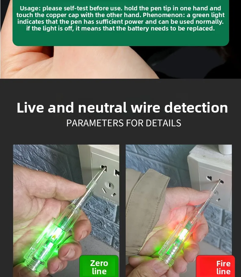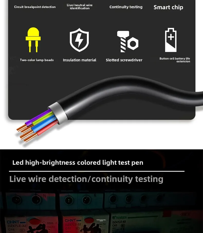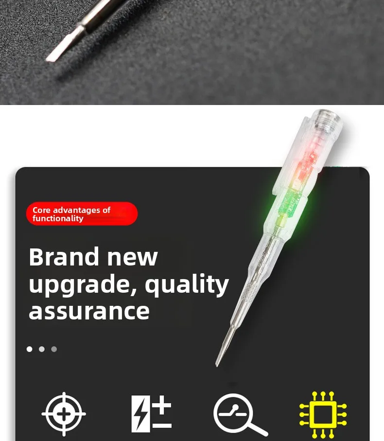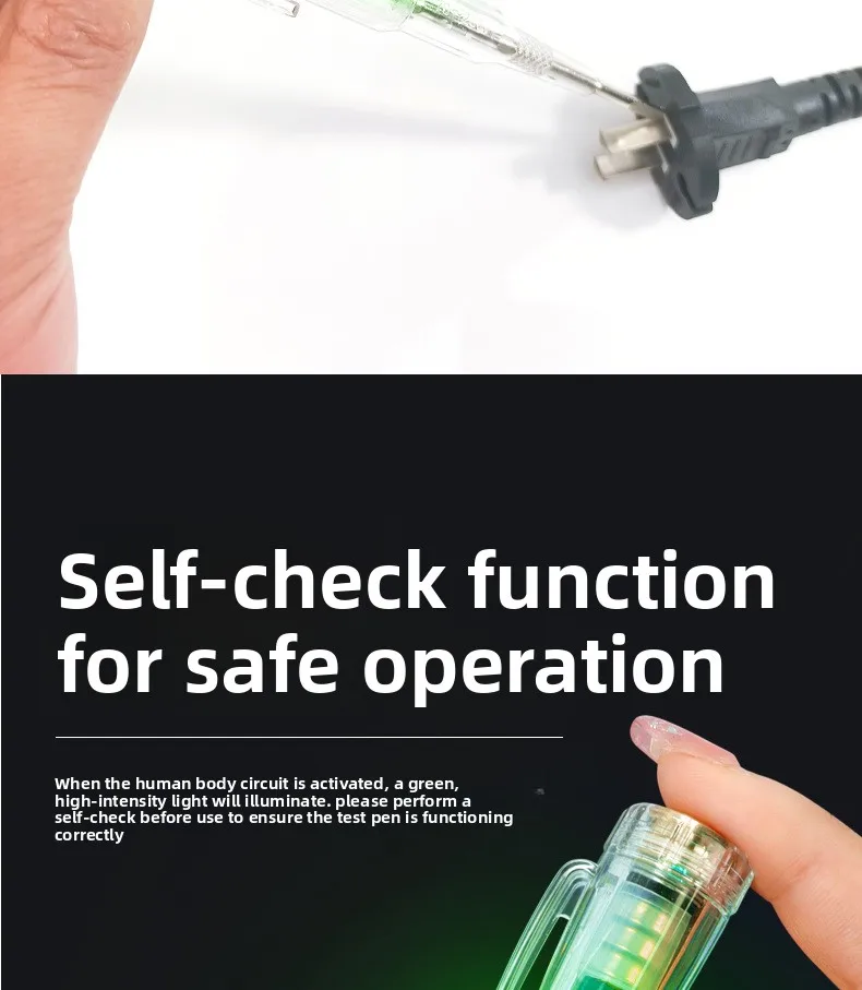 This intelligent voltage tester pen is designed for quick and reliable zero/live wire identification, ensuring safety and precision in electrical measurements.Equipped with a smart chip and high-brightness LED indicators, it delivers fast response and minimal error for both professional electricians and DIY users.